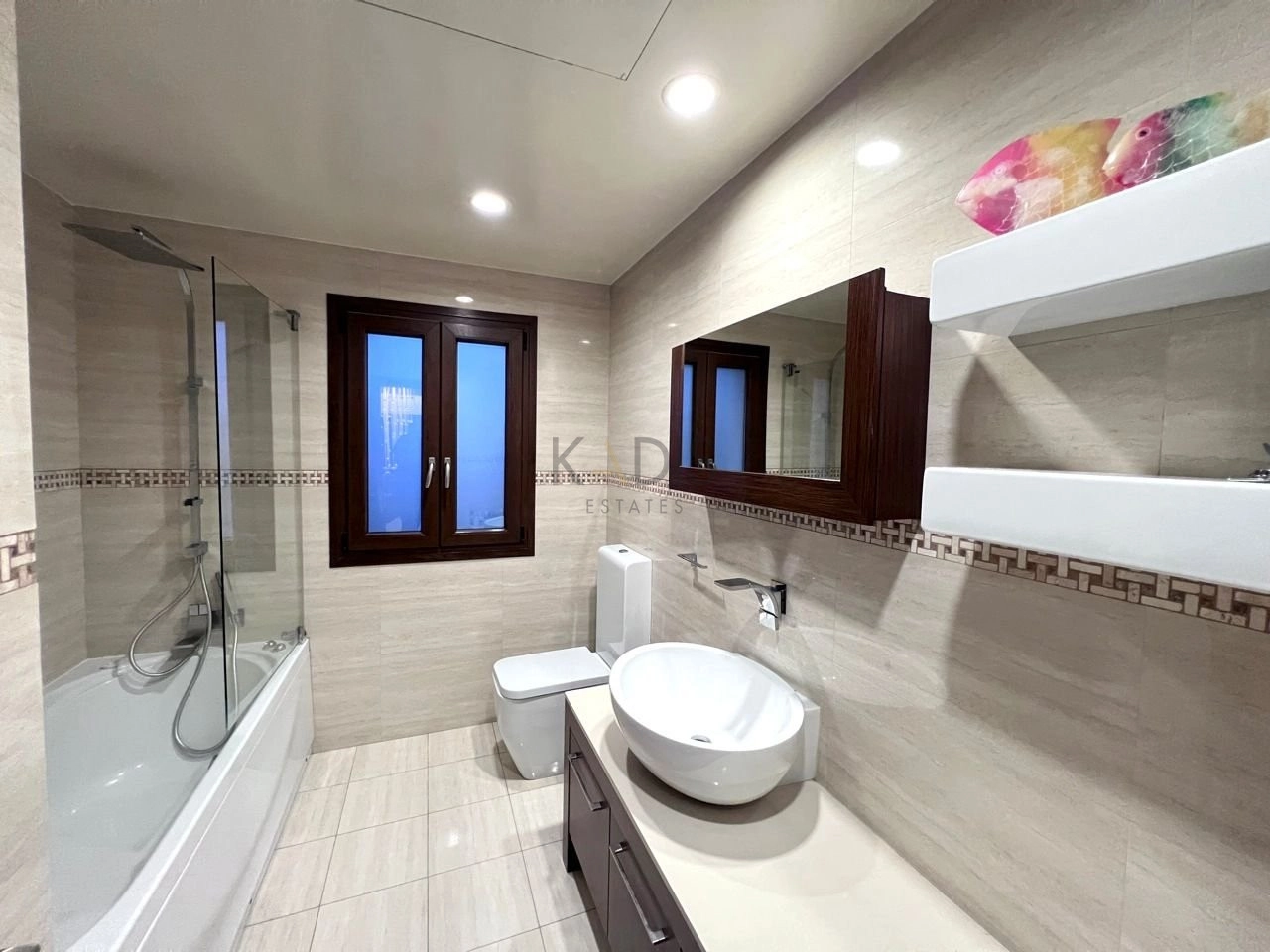 The villa offers five generously sized bedrooms, including a lavish master suite with en-suite bath and private balcony. An additional office space provides a quiet area for working from home, while a maid’s room and laundry room offer added convenience.