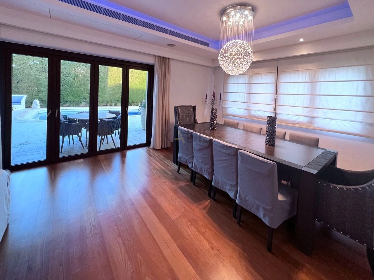 Outdoor living has been seamlessly integrated into the design of this villa, with expansive terraces perfect for al fresco dining and entertaining. The pièce de résistance is the sparkling outdoor swimming pool, surrounded by a large sun deck and lush gardens.