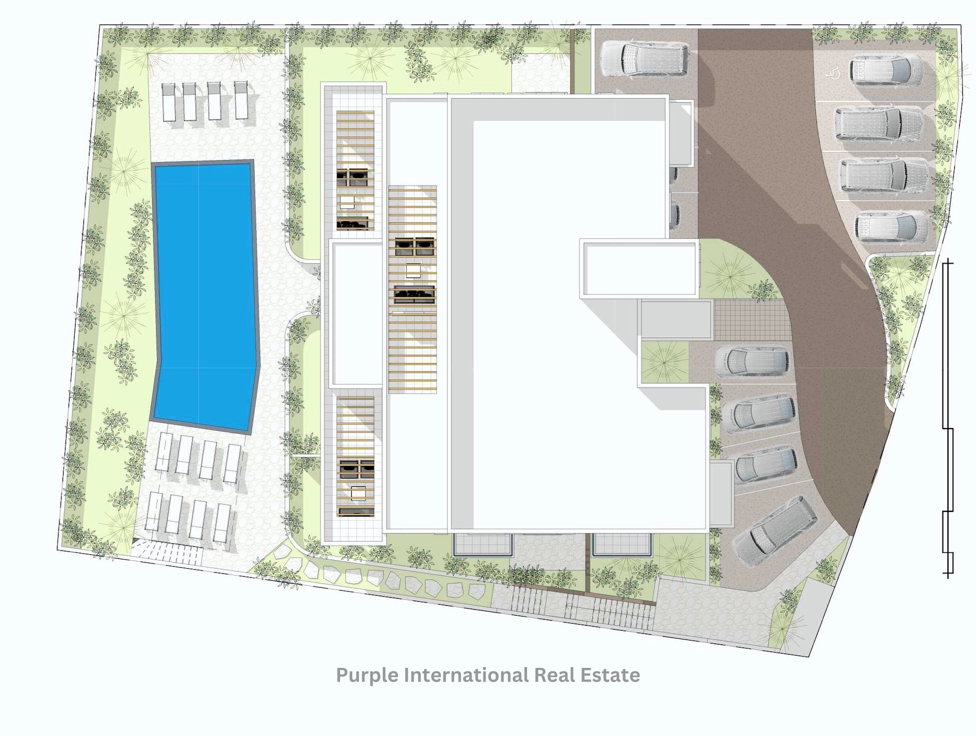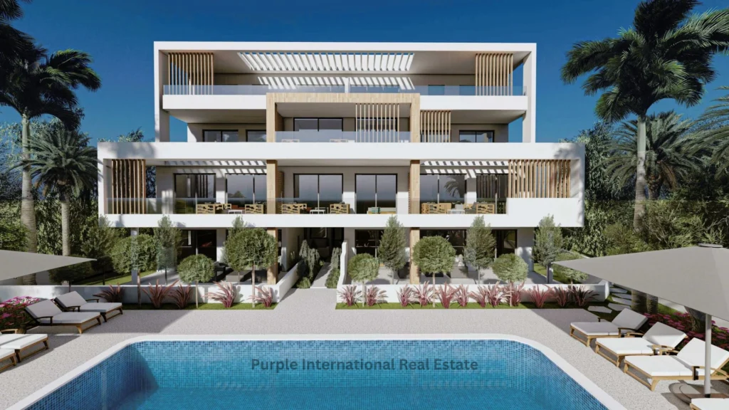 A modern off-plan apartment located in the desirable area of Geroskipou. This spacious ground-floor apartment offers 82 m2 of well-designed internal space, featuring two comfortable bedrooms and two contemporary bathrooms. Enjoy easy access with the convenience of an elevator, providing comfort for all residents.