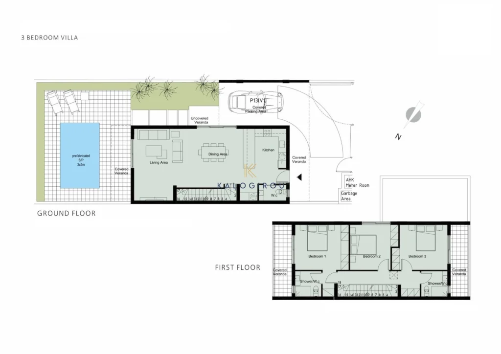 This contemporary project boasts a triple- storey apartment building with common pool and two 3-bedroom villas, each villa with private pool. On the ground level of the apartment building there are private parking spots for every apartment, men & women wc and changing rooms & the swimming pool.