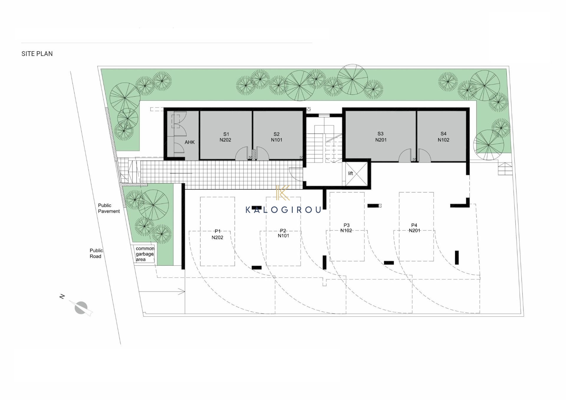 First floor apartment for sale in a modern complex in Paphos, Empa village. It consists of an open plan kitchen/dining, living area, covered veranda, a main shower room, 3 bedrooms, two of them en suite with shower and wc. The property has right of use to an allocated covered parking and storage room on the ground floor.