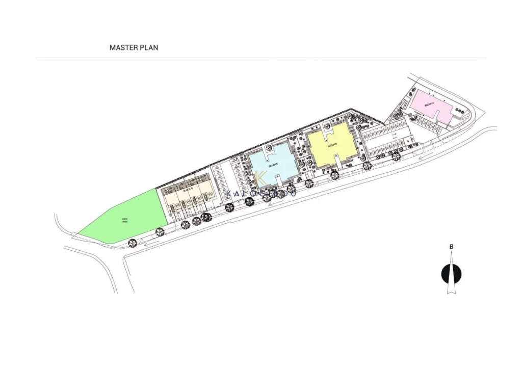 The apartment is part of a mixed use development comprised of 1-,3 bedroom apartments, 3-bedroom maisonettes and shops. In total there are four blocks. It is worth mentioning that the properties are adjacent to a public park.