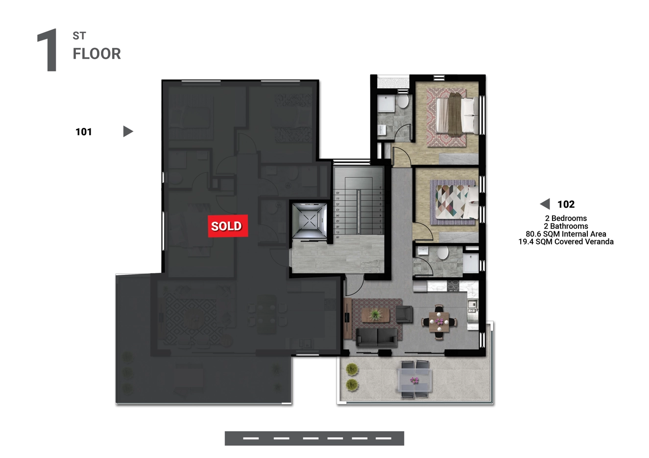 This elegant 2-bedroom apartment is part of a high-end residential project located just 700 meters from the beach and only a few steps from the New Marina of Larnaca and the American University of Cyprus. Nestled in a luxurious and fast-developing neighborhood, the project offers modern architecture, quality finishes, and excellent connectivity to the city center.