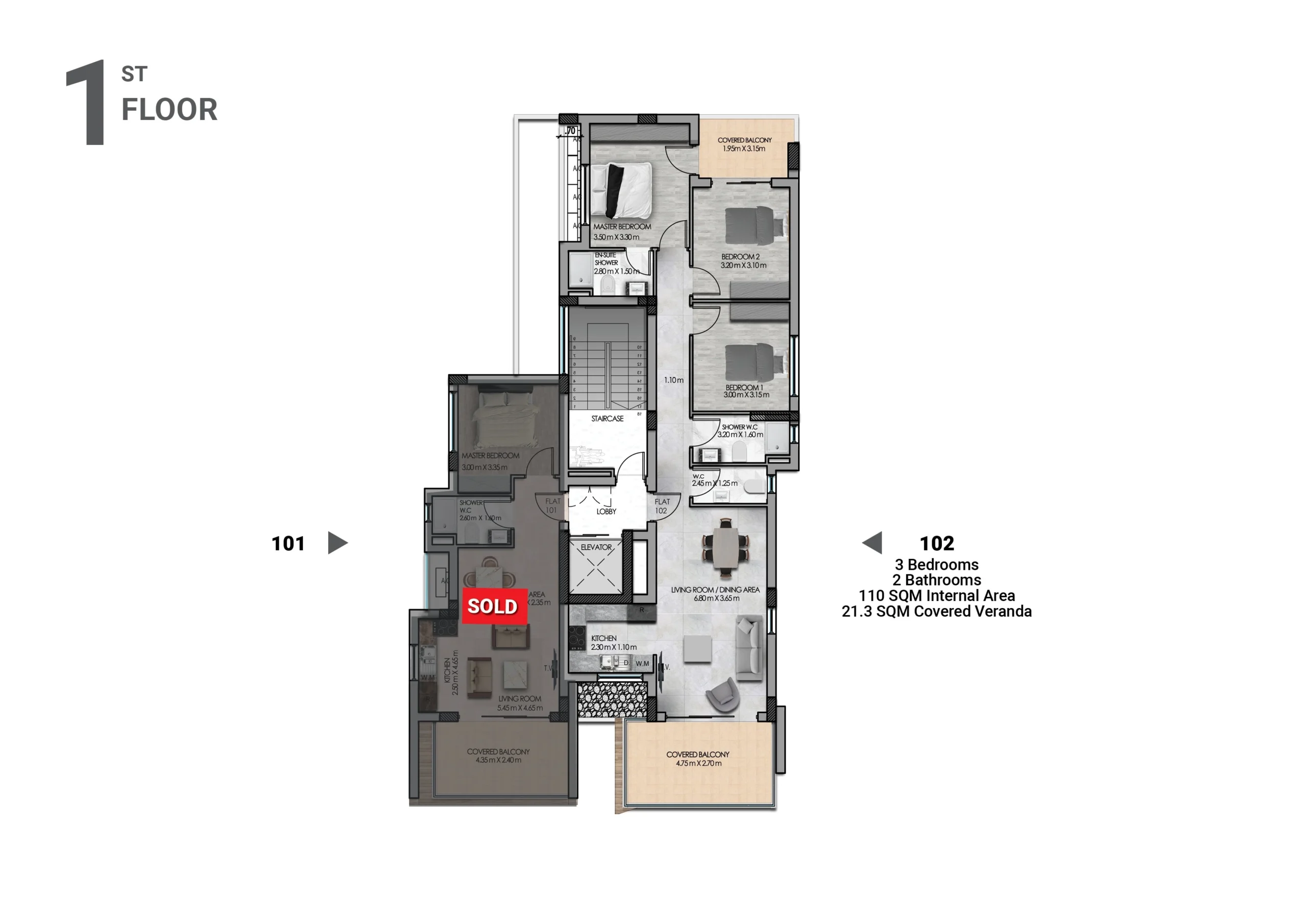 3 BR Apartment in a luxurious building, situated at only 2 minutes from Mackenzie beach in one of the most prestigious and touristic areas in Larnaca, at a walking distance from restaurants and cafes.