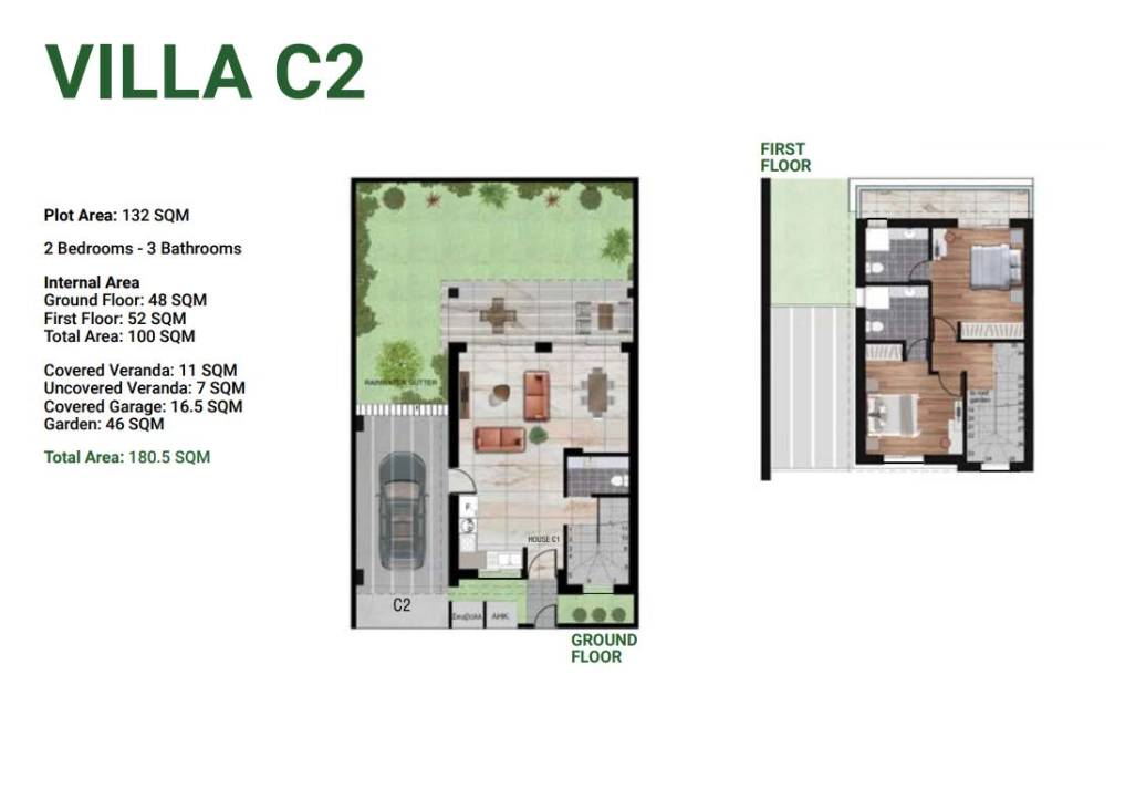 This beautifully designed 2-bedroom villa is part of an exclusive residential development located just a few minutes from the serene Mediterranean coastline. Surrounded by a private garden, with the option for a swimming pool and an uncovered roof terrace, the home offers the perfect blend of comfort, outdoor living, and style.