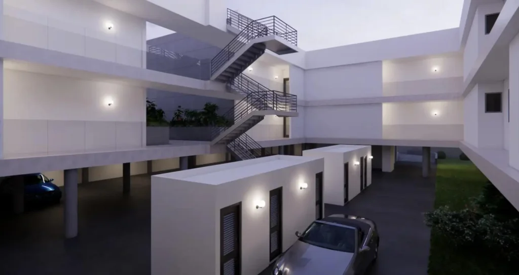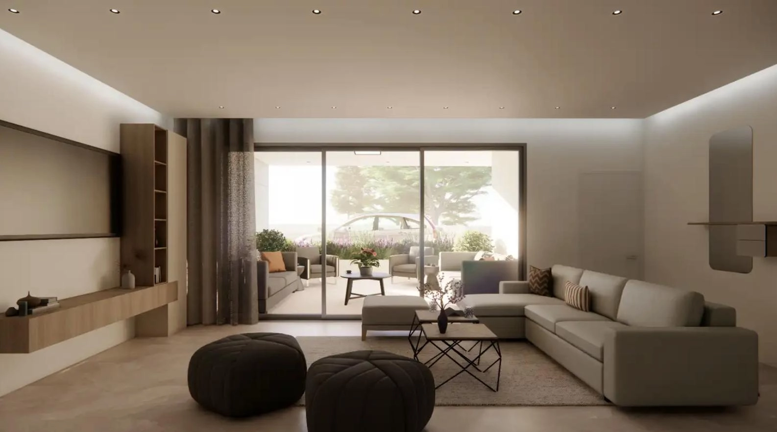 Apartments for sale in a new project in the area of Lymbia, Nicosia. Each apartment has 2 kilowatts of photovoltaic panels and parking. The kitchen is designed with special functionality and aesthetics, with a spacious island that serves as a daily dining area, with comfortable stools on the outside. On the inside of the island there are practical drawers for storing dishes and cutlery, offering organized and easy access. The kitchen furniture has a minimalist design in soft cream and white tones, and the countertop is covered with white granite, which adds elegance and durability.