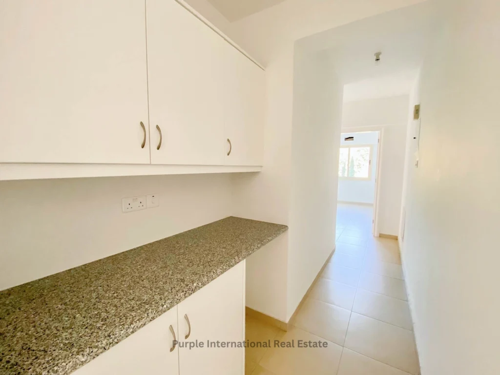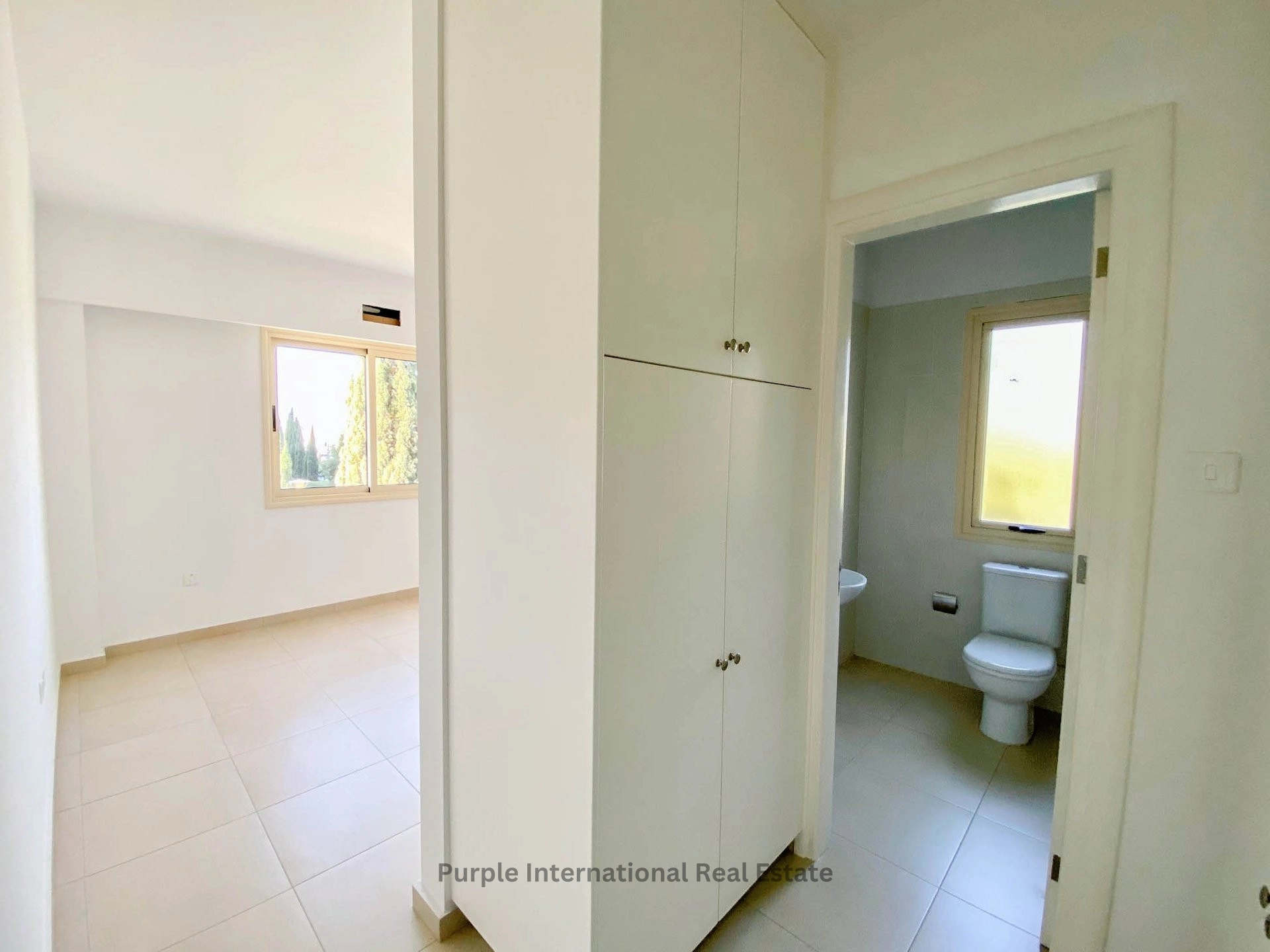 This 3 bedroom apartment has a Total Covered Area: 114.8m2, Covered veranda: 14.8m2, 3 bedrooms / 2 Bathrooms ( 1 En-Suite), Uncovered Parking included. The property is sold without furniture and appliances. The apartment offers beautiful views of the communal green area and side swimming pool views. It is a corner property with maximum privacy. Attractive option for investment with high rental potential and perfect for enjoyable and comfortable living.