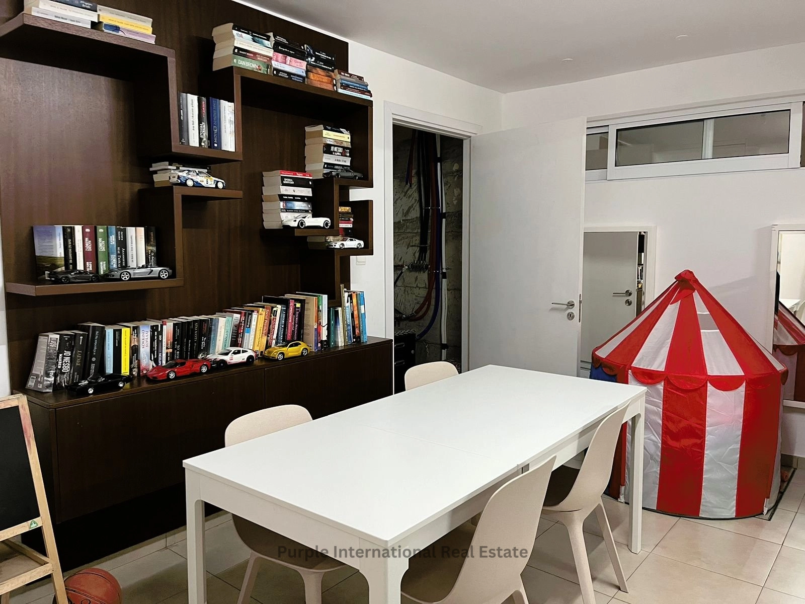 This beautifully designed big villa is built on a plot of 524m² , and has two floors and a large basement. The ground floor has an open plan spacious kitchen, living area with a fireplace and dining area leading out to a veranda. One bedroom and a guest WC are located on the same floor. On the other floor there are three large bedrooms, one of them is a master bedroom with en-suite facilities. Basement of 100m² offers a spacious maid’s room with separate bathroom, a large lounge room, several storage/utility rooms, gym room (optional) and laundry area. Covered and uncovered private parking available.