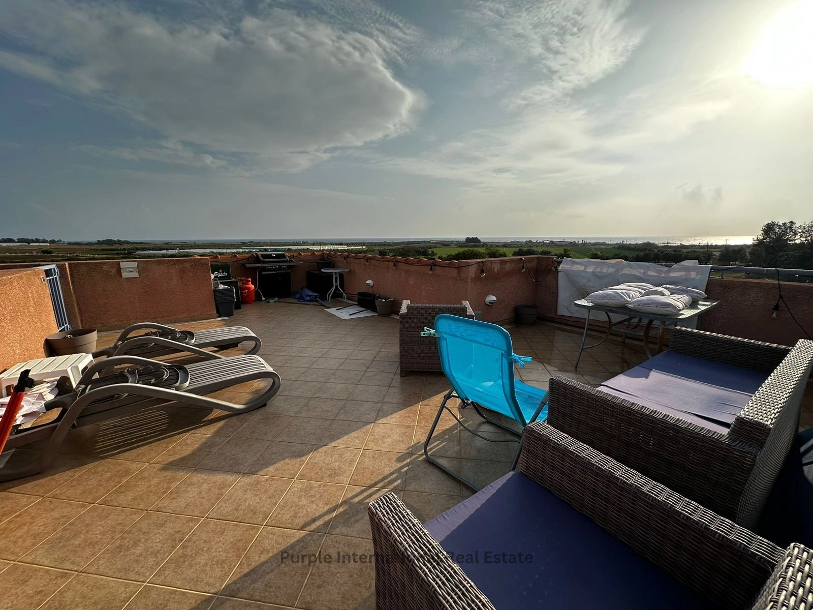This spacious apartment features open plan living and dining area and a kitchen opening out to a covered balcony of 4sqm. From living area there is access to a uncovered large veranda of 17sqm. The property continues with 2 bedrooms. The master bedroom offers en-suite facilities. A family bathroom concludes the property. There is roof terrace of 11sqm offering views to the sea and nature. The apartment features private roof garden of 47sqm.