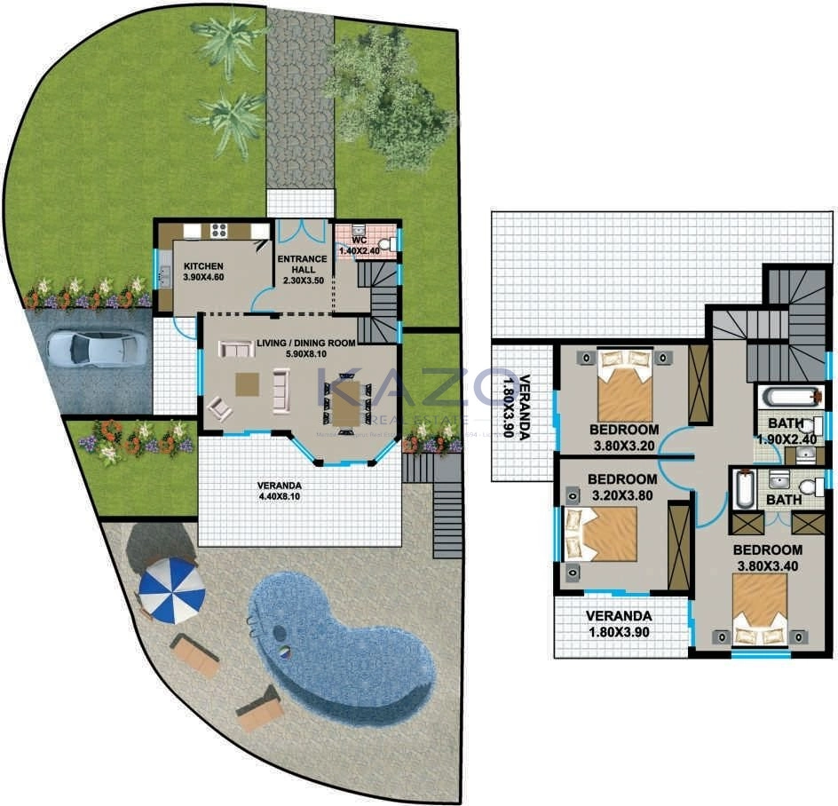 This villa comes partially furnished, allowing you to move in with ease and add your personal touch. Experience a unique blend of comfort and nature in this wonderful home, advertised exclusively by Kazo Real Estate.