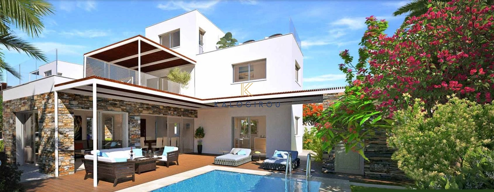 Three Bedroom Villa with Pool & Roof Garden in Tourist area of Geroskipou, Paphos. The development is located 250 meters from one of one of the most famous sandy beaches in Paphos and enjoys easy access to a variety of restaurants, pubs, beach bars, 5-star hotels, the Paphos waterpark and the Kings Avenue Mall.