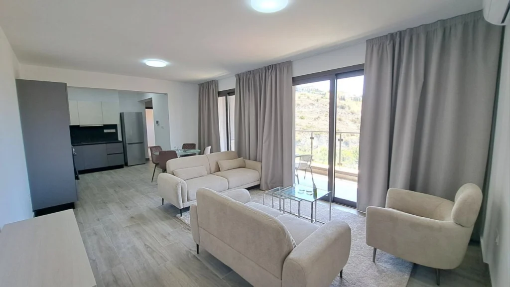 Situated in the newly developed gated complex, this apartment provides modern living in a secure and tranquil environment. It is offered with electrical appliances and A/C units. A dedicated covered parking and storage room are also included. The complex features two elegant residential buildings with 15 apartments overall, designed with eco-friendly principles, blending contemporary architecture with natural surroundings. Evergreen offers sustainable living in the serene mountain landscapes of Limassol with charming views that enhance every moment.