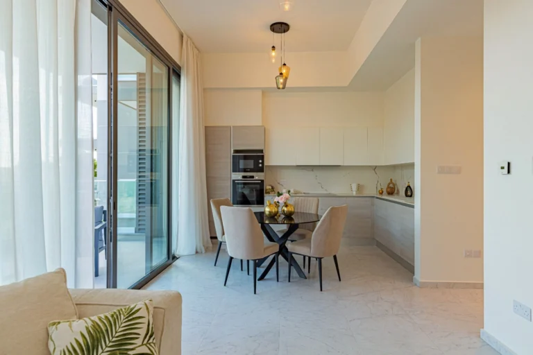 Apartment for sale in a new premium residential complex in Germasogeia, Limassol. The project includes 16 premium class apartments in a thriving area, a central location in the heart of Limassol’s tourist area, full of vibrant life, shops and an endless array of upscale Limassol restaurants. Thoughtful space and ergonomic plumbing from leading European brands. Elegant design, attention to detail, high ceilings up to three meters. A modern, comfortable kitchen with granite worktops. Built-in furniture and natural materials. Fire-resistant entrance door with modern locking system. White interior doors. Balcony doors (height: 2.40 m) and windows (height: 1.4 m). Aluminum profile with double glazing and thermal insulation. Glass balcony balustrades. Built-in wardrobes in the bedrooms. Chipboard and white matte finish. Closed protected area. Lockable entrance door systems with a high level of security. Video doorbells in each apartment.
