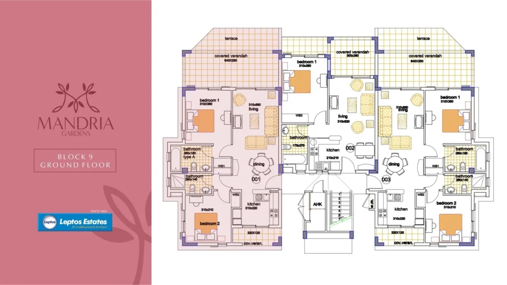 Mandria Gardens Garden Flat No. 001 is located in an exceptional seafront development that offers one and two bedroom apartments and penthouses and three bedroom detached villas. There are two communal swimming pools one of which is heated during the winter months set in beautiful and spacious landscaped gardens. The project also features a private clubhouse for residential use. The traditional styles fixtures and finishes have been carefully selected to retain the charm and authenticity of the region. Mandria Gardens offers exceptional value for money particularly for those wanting to invest in property as a primary secondary or buy to let investment that is close to golf resorts hotels amenities services places of interest and centrally located between Paphos and Limassol .