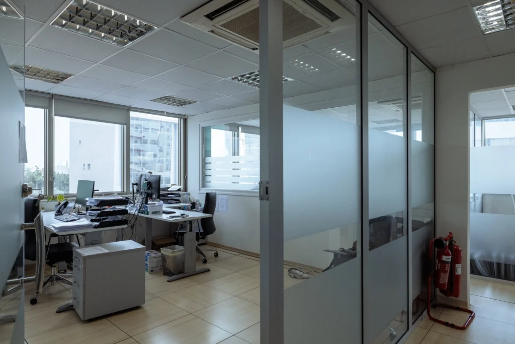 2-storey building plus ground floor, total area 930m2 is in a great location, in a business part of a city and within walking distance from the District Court of Limassol. Ground floor 180 m2. Mezzanine 40 m2. The area of each floor is approximately 300 m2. The area of 1-2 floors together is 600 m2. Roof garden of 60 m2. All offices have a VRV system, raised floors, wifi optical fiber cable internet and structural cabling. The office is furnished. 12 Parking spaces + 3- additional spaces. Located in the area of Agios Nikolaos, within walking distance from the sea.