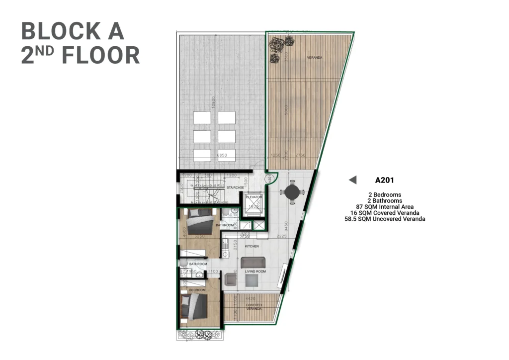 Modern 2-bedroom penthouse located on the top floor of a boutique development, featuring a large open veranda ideal for outdoor dining and relaxation. Perfectly positioned just a few minutes from the upcoming Larnaca New Marina & Port – the city’s largest and most exciting development.