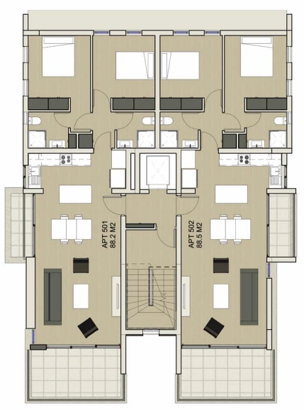 Situated in the vibrant center of Larnaca, this beautifully designed 2-bedroom penthouse is part of a modern five-floor residential building offering contemporary city living at its finest. Featuring a spacious private roof terrace, the property is perfect for those seeking a blend of indoor comfort and outdoor leisure in a prime location.
