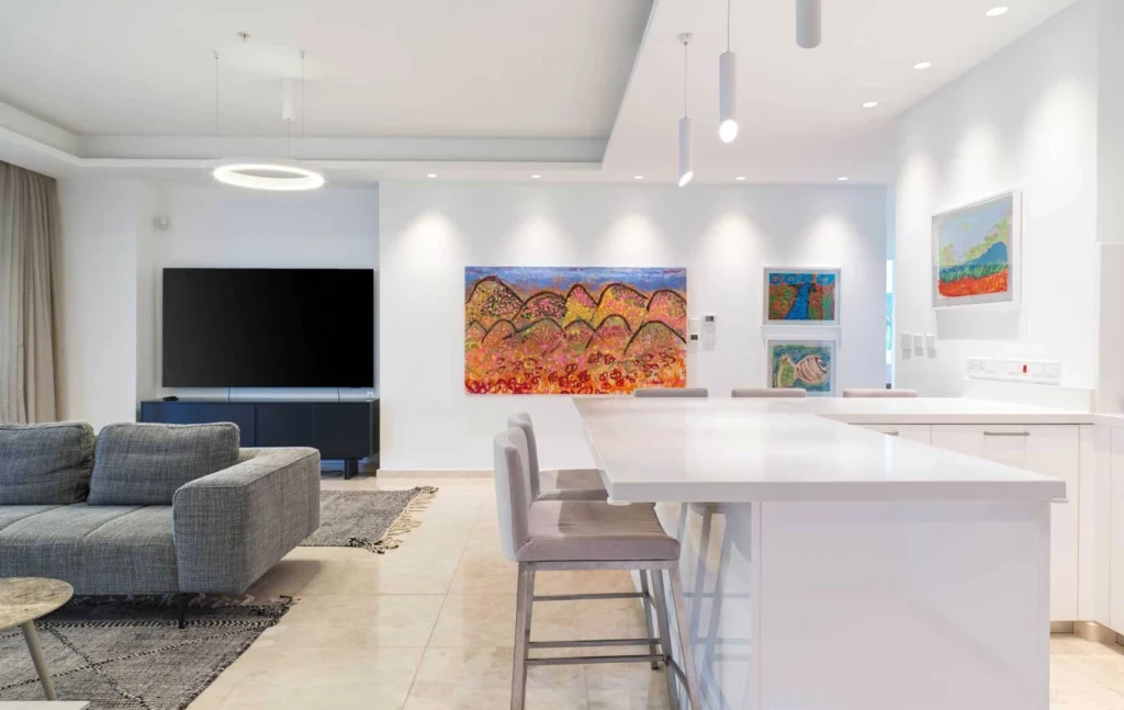 Bright and sophisticated living awaits you in The Tower’s 3-bedroom apartment. The place to live, play and enjoy rising up on the 7th floor with astonishing views of the Limassol Bay, the spacious gardens and the first private marina in the island. As part and with direct access to St Raphael Resort, this is your chance to live your Limassol story, while enjoying five-star facilities and services – from multi-award-winning restaurants, shops as well exclusive rooftop gym & swimming pool on your doorstep, this is the place to be! The interiors of this large residence are tastefully designed and crafted to embody both timeless style and modern class. A beautifully conceived master bedroom with mesmerizing beach views and lush greenery, excite the senses promising you even more memorable experiences. An open plan living room combined with a contemporary kitchen, marrying function and style, invites you to revel the ultimate seafront living. The two other large bedrooms with spectacular views of Limassol from the windows, promises you to delve into a world of prestigious living and experiences. All ensuite for the ultimate convenience! This luxurious three-bedroom apartment strikes the perfect balance between modern convenience and natural wonder.