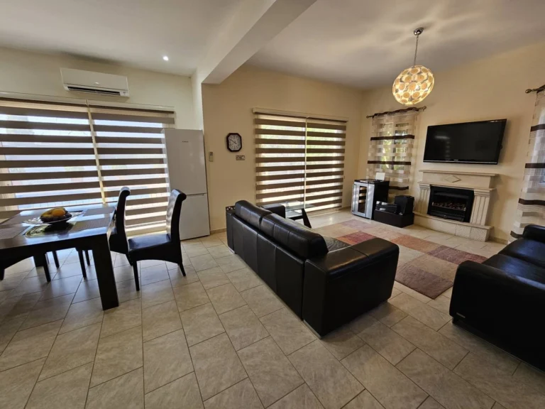 Villa for sale in the village of Agios Therapon. Nearby there are cafes, supermarkets, restaurants. Bedrooms: 3. Bathrooms: 2. Guest toilet: 1. Outdoor veranda: 30 m2. outdoor parking: 3 m2. Fireplace. Provision of air conditioning. The alarm system. Garden.
