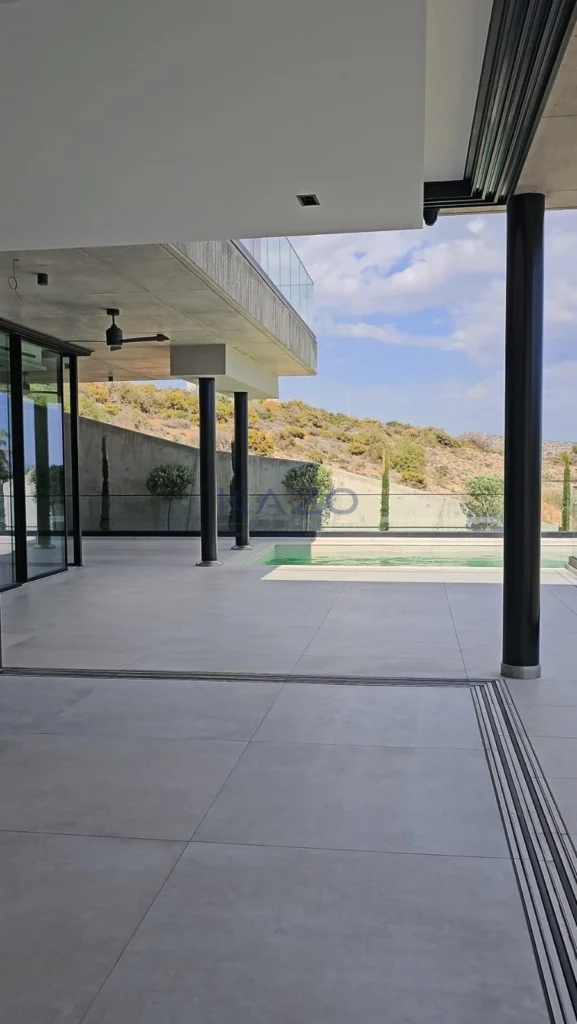 The detached villa is located in a great location in the Germasoyeia village area, offering unique panoramic sea and town views. This magnificent property is five minutes’ driving distance to the Motorway, meaning that the residents will be able to travel with ease to ny part of the island, whether it is for work or leisure purposes. Also, the five-bedroom villa is a ten-minute drive to the sandy Dasoudi Beach and the Germasoyeia Tourist area, and a twenty-minute drive to the Old Town and Limassol Marina. Close to this contemporary household, there are all types of services that a family needs, services such as supermarkets, cinemas, pharmacies, restaurants, cafes, gyms, parks, kindergartens, private and public schools (Foley’s), bakeries, spas, retail shops, beaches, and much more.