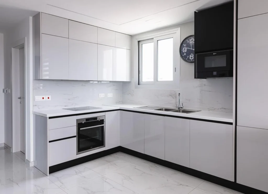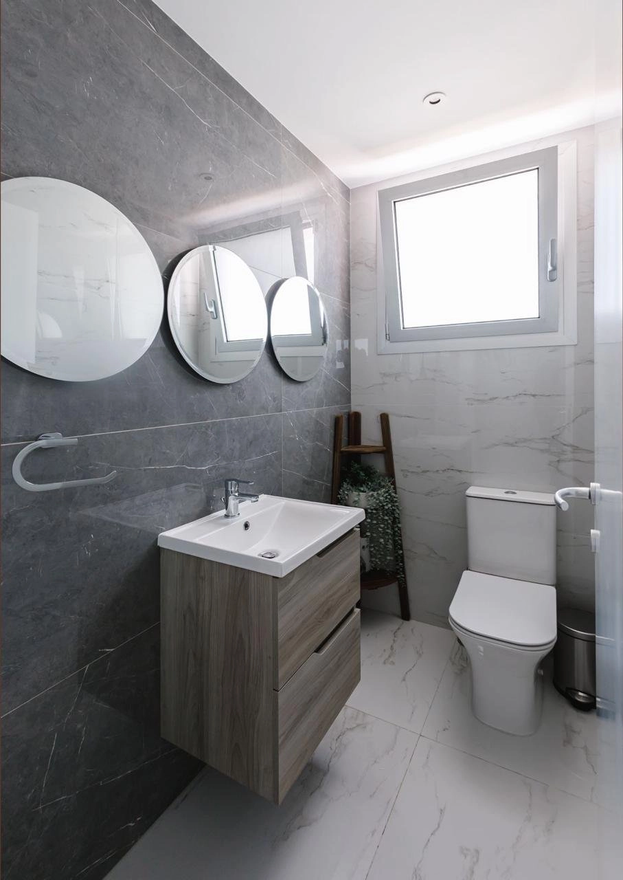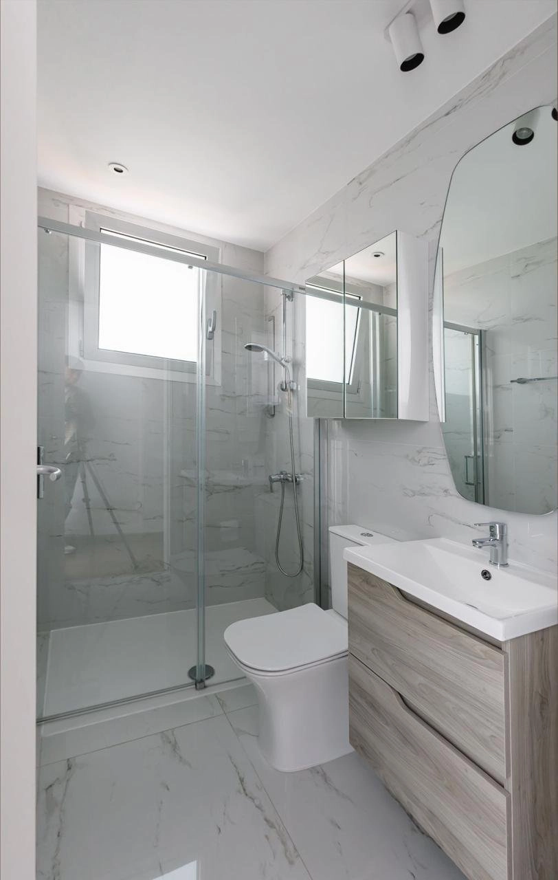Built in 2022, this 4th floor penthouse has air conditioning and underfloor heating with an internal area of approx. 115 sqm which accommodates three bedrooms with parquet floors, an ensuite shower room to the master bedroom, a house bathroom with laundry equipment, and a separate toilet. The open-plan living area is finished with ceramic floor tiles and has a fully fitted kitchen with breakfast bar, and dining and sitting areas.