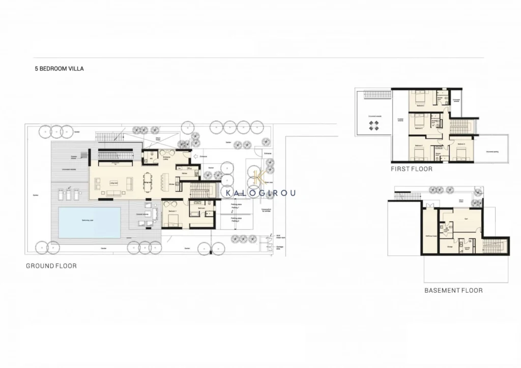Lavish villa for sale in Chlorakas area. The house is set on a large plot of 840 sqm & is situated on the first line from the beach. It comprises of ground, first and basement level. The ground level consists of an entrance hall, open plan kitchen, living, dining area, a guest wc and one bedroom – en suite bath. The first floor comprises of a main shower room with wc, 4 bedrooms, two of them are en suite with shower. In addition, on the first floor there are spacious covered and uncovered verandas on the front as well as on the back side. The basement level, consists of a laundry room, shower room, storage and another room which can be used as a gym/office/playroom.