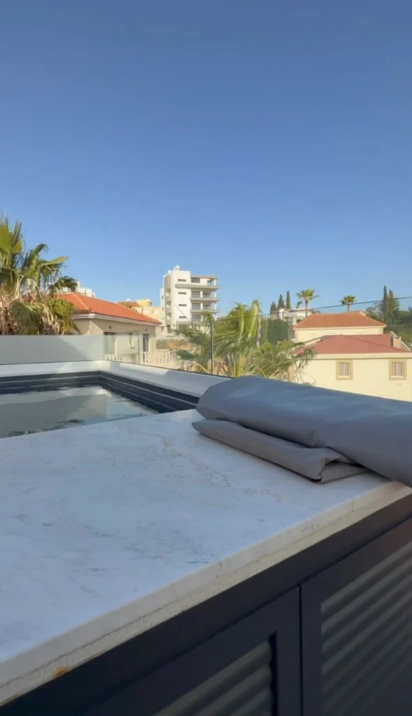 Experience unmatched comfort in this exquisite 3-bedroom penthouse featuring a solar energy system, underfloor heating, and a heated swimming pool with turbo jet for lap swimming. Enjoy 24/7 hot water, an outdoor bathroom and toilet, outdoor TV, a stylish barbecue area with an island bar, and an aluminium pergola for year-round entertaining. Mitsubishi Heavy Industries A/C, water softener, and a heat pump ensure optimal climate and water quality. Smart home living includes Somfy automated shutters and blinds, plus 2 entrance cameras for enhanced security. Located just 750 meters from Grammar School.