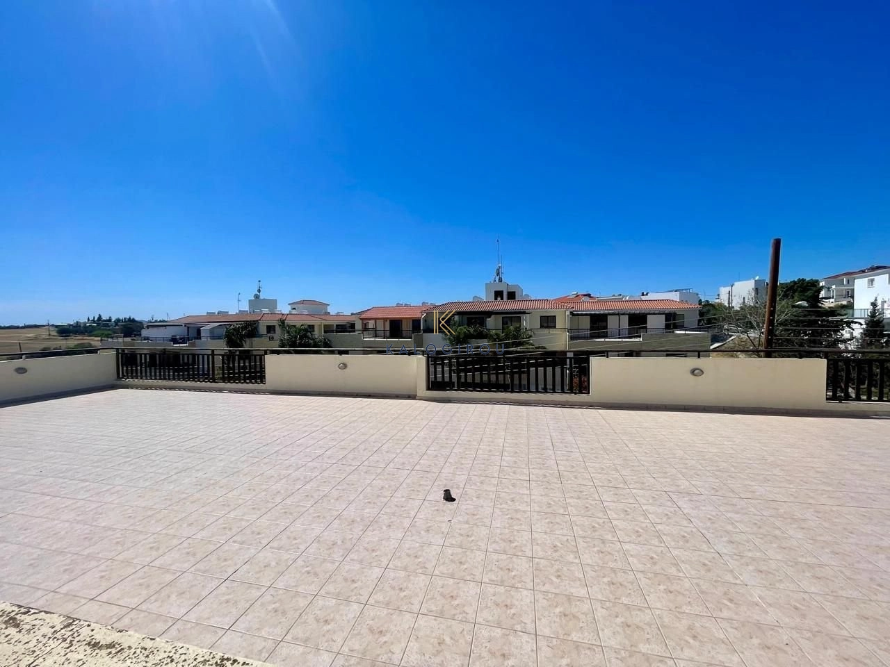 Top floor apartment for sale in Larnaca, Tersefanou area. The apartment has internal covered area of 55 sqm. It consists of an open plan kitchen, living area, one bedroom with access to the veranda, a main bathroom, uncovered veranda of 10 sqm and a lovely roof garden. The property has right of use to a covered parking on the basement of the building.