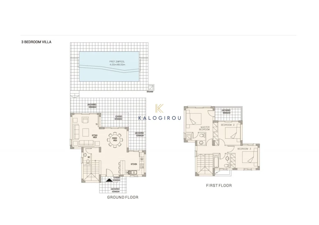 Double storey house for sale in Kouklia area. The ground floor consists of a living, dining, kitchen in an open layout and a guest wc. The first floor, consists of a main bathroom, three bedrooms, master bedroom is en suite uncovered veranda. Externally, the property has covered veranda, large uncovered veranda, garden, swimming pool, outdoor shower and covered parking.