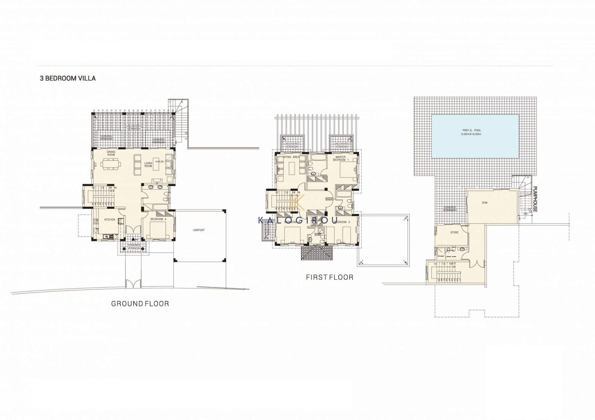 Villa for sale in Kouklia area. The ground floor consists of a living & dining area, separate kitchen, a main bathroom and one bedroom. The first floor consists of a sitting area, 3 en suite bedrooms-two of them with bath and one with shower and 3 uncovered balconies. Externally, the property consists of a garden, big verandas, swimming pool and covered parking. Furthermore, the house offers storage room, shower room and gym.
