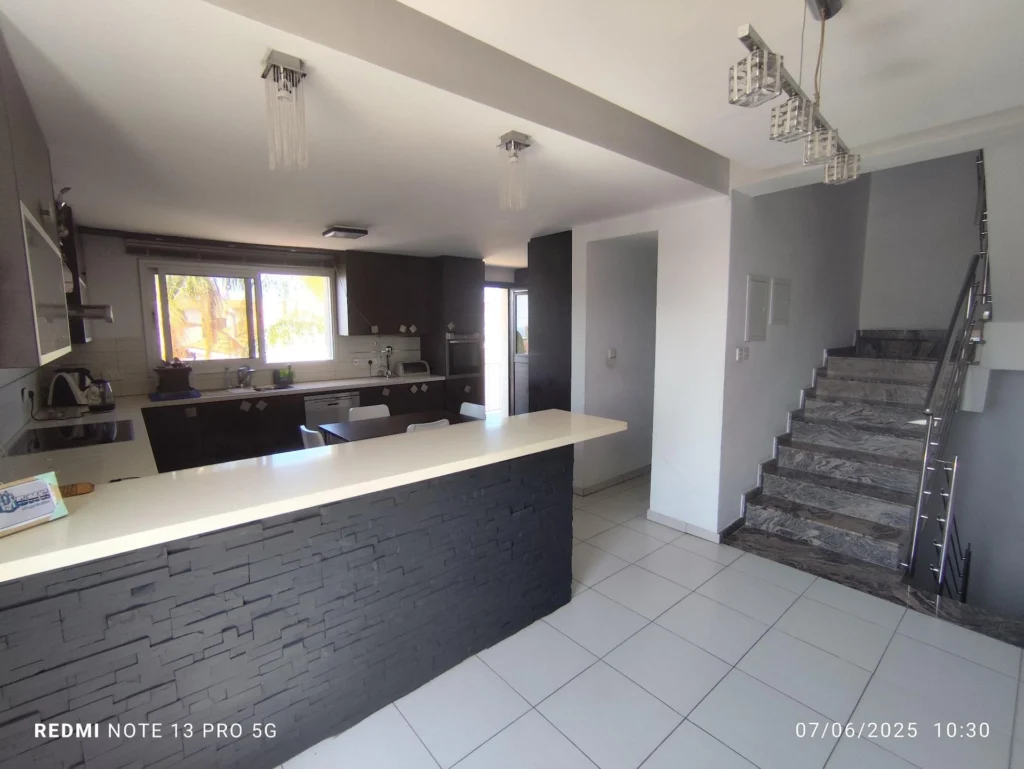 Lovely six bedroom detached house in Episkopi is available now. . It has internal covered area 270 square meters and the plot size is 297.50 square meters. In the ground floor there is an open plan kitchen with one living room , two bedroom and one family bathroom. In the first floor there is one sitting room, one dining room , an open plan kitchen and guest w/c. Also there are four bedrooms( one of them has en-suite shower) , all with fitted wardrobes and a family bathroom on the second floor. Outside of the building there is a nice big garden with trees and flowers, with automatic watering system and large covered parking space for two cars The aluminium doors and windows are double glazed with security locks. It has solar photovoltaic panels as well. Also it has alarm system, a/c in all areas and nice veranda and courtyard to enjoy your coffee and food. .The house is located in one of the best areas in Episkopi with view of Limassol and is only fifteen minutes drive from Limassol City. Located in a quiet ,nice area surrounded by nice houses at a dead end road. It has easy access to the motorway