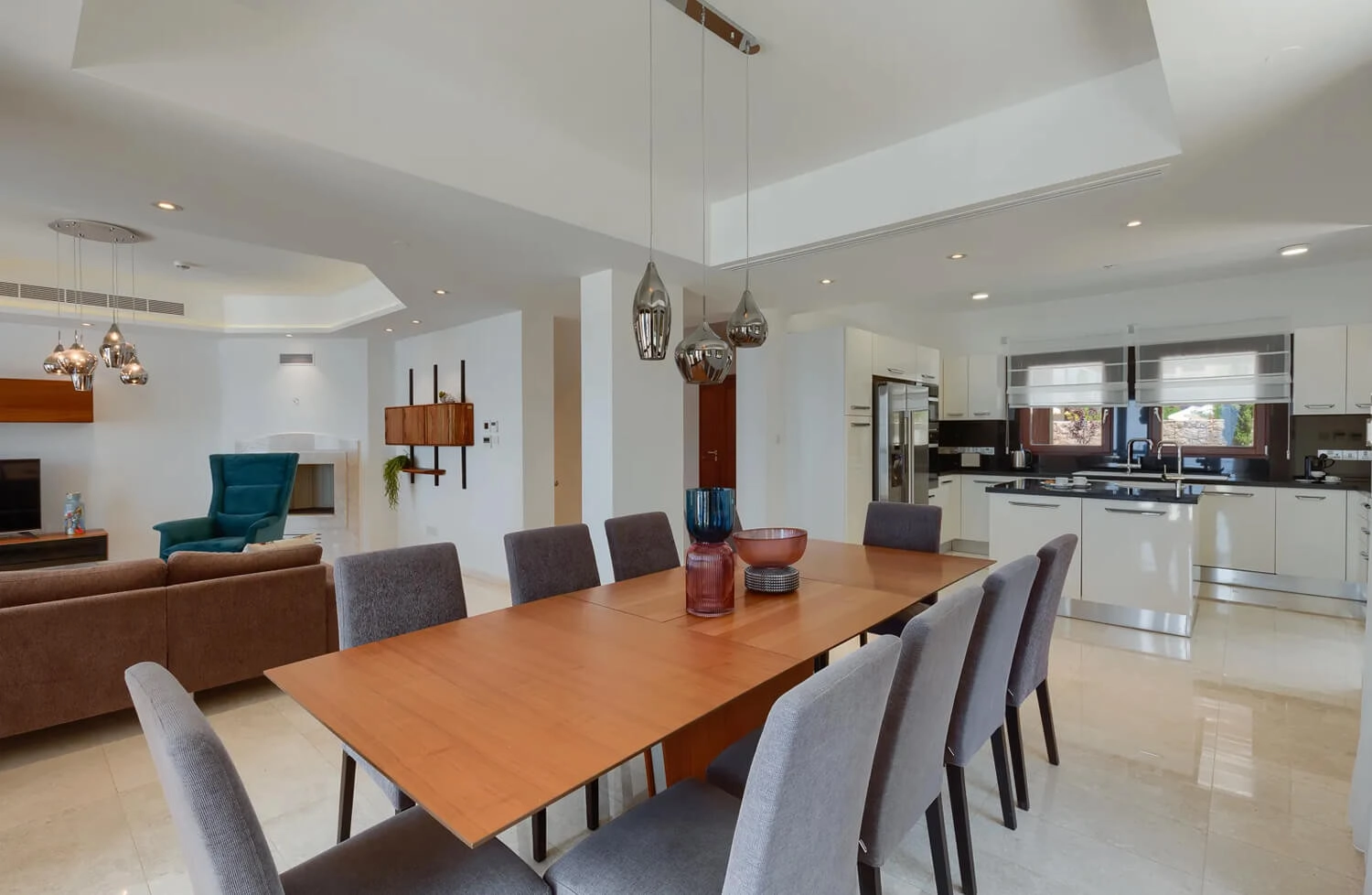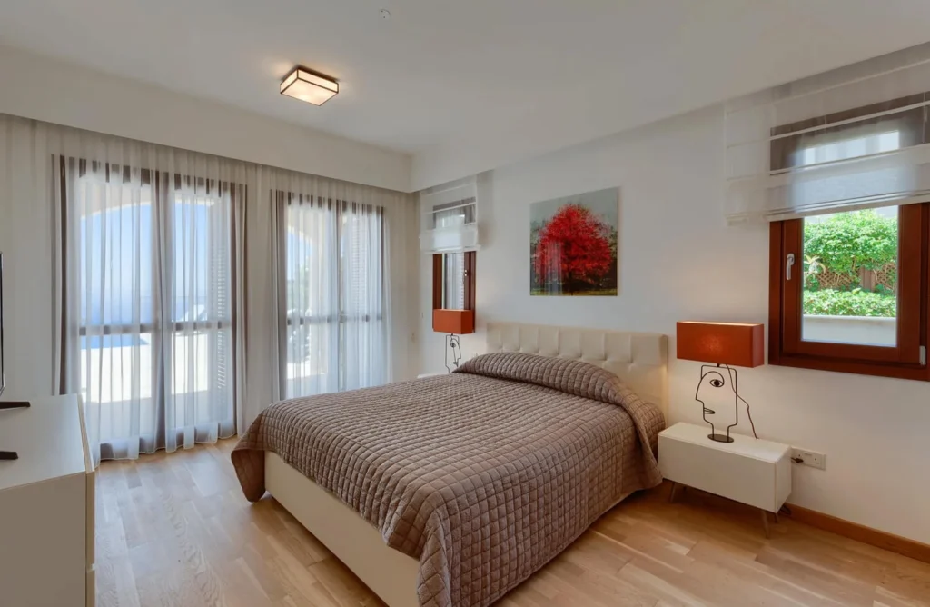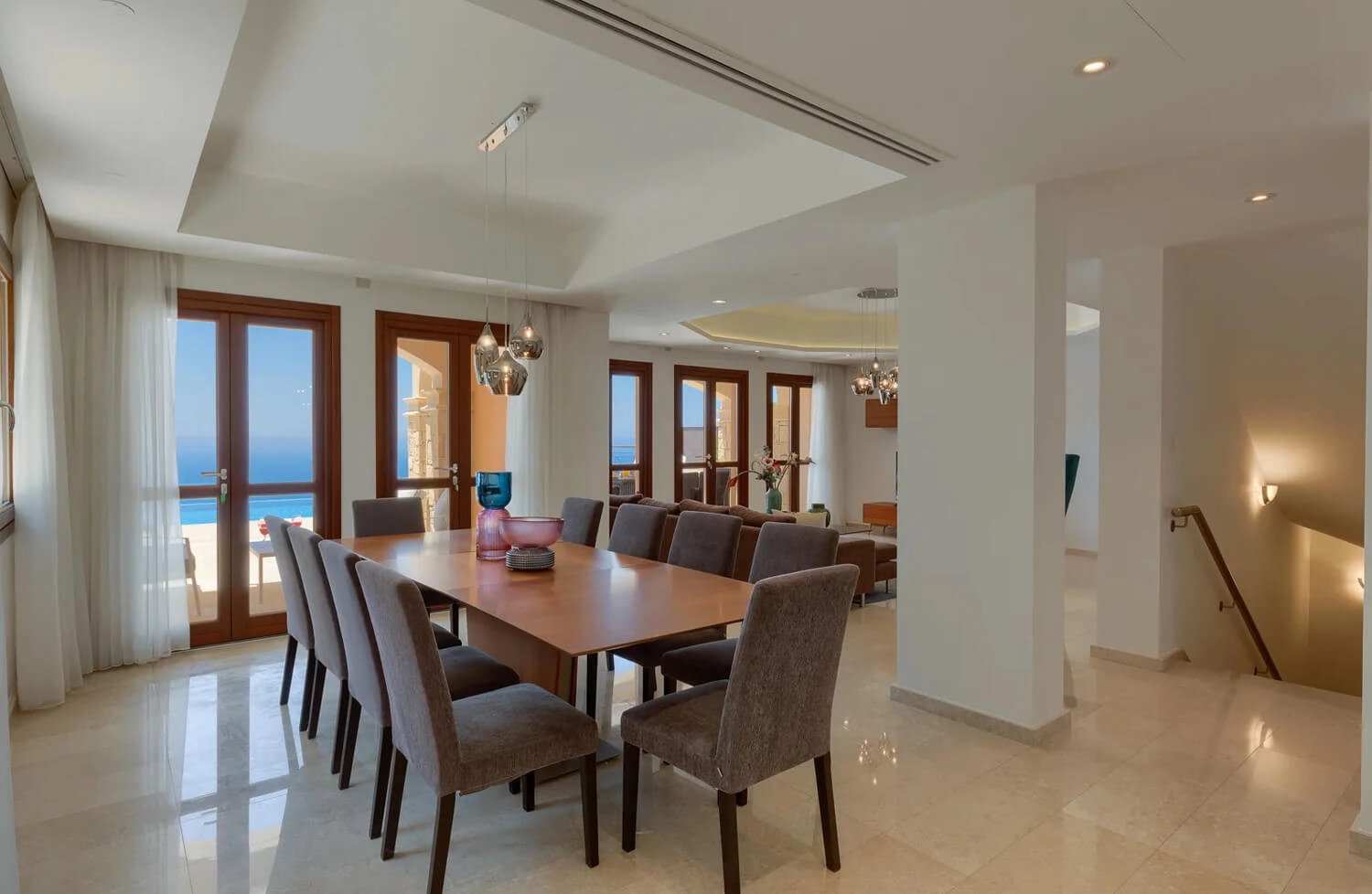 A6: The villa has been tastefully decorated in neutral tones with elegant furnishings, modern fixtures, and luxurious finishes throughout.