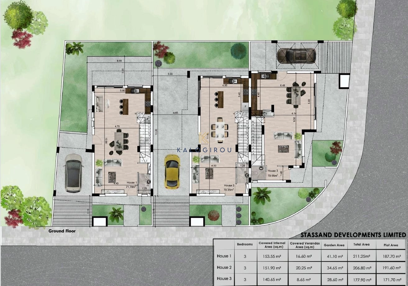 This project boasts 3 houses, 1 detached and 2 semi-detached. All houes have an open plan layout with guest wc on the ground floor and the first floor boasting three comfortable sized bedrooms one of which is en-suite. Storage areas are also available, covered parking and ample garden space.