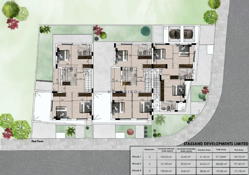 This project boasts 3 houses, 1 detached and 2 semi-detached. All houes have an open plan layout with guest wc on the ground floor and the first floor boasting three comfortable sized bedrooms one of which is en-suite. Storage areas are also available, covered parking and ample garden space.