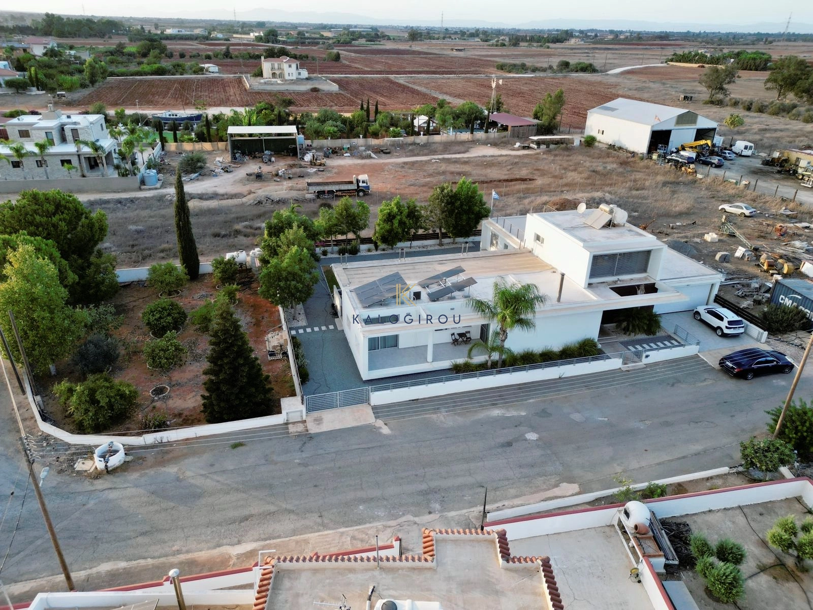 The house is equipped with a photovoltaic system, offering energy efficiency and reducing electricity costs, central gas heating and air conditioning units. The total plot size is 4,665 sq.m., while the house covers an area of 220 sq.m. The house is built on a reallocated plot but has full building permits and is adjacent to the residential zone.