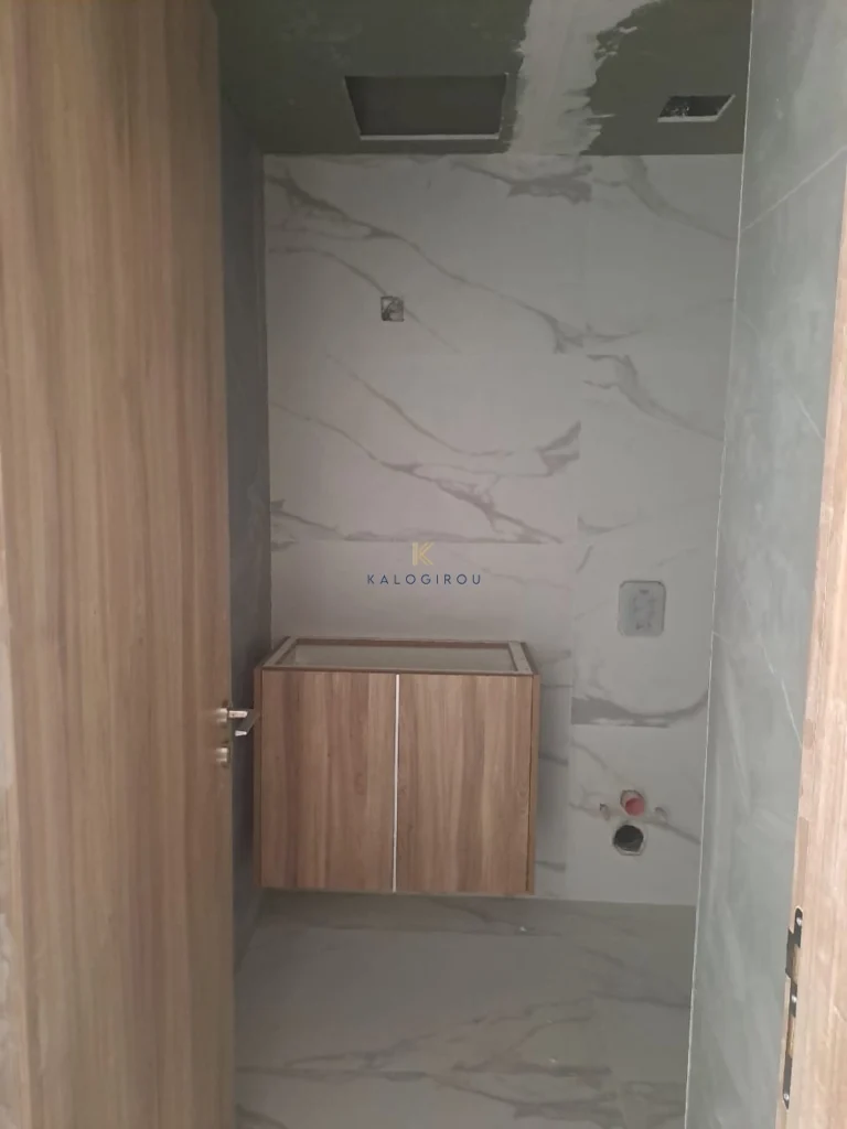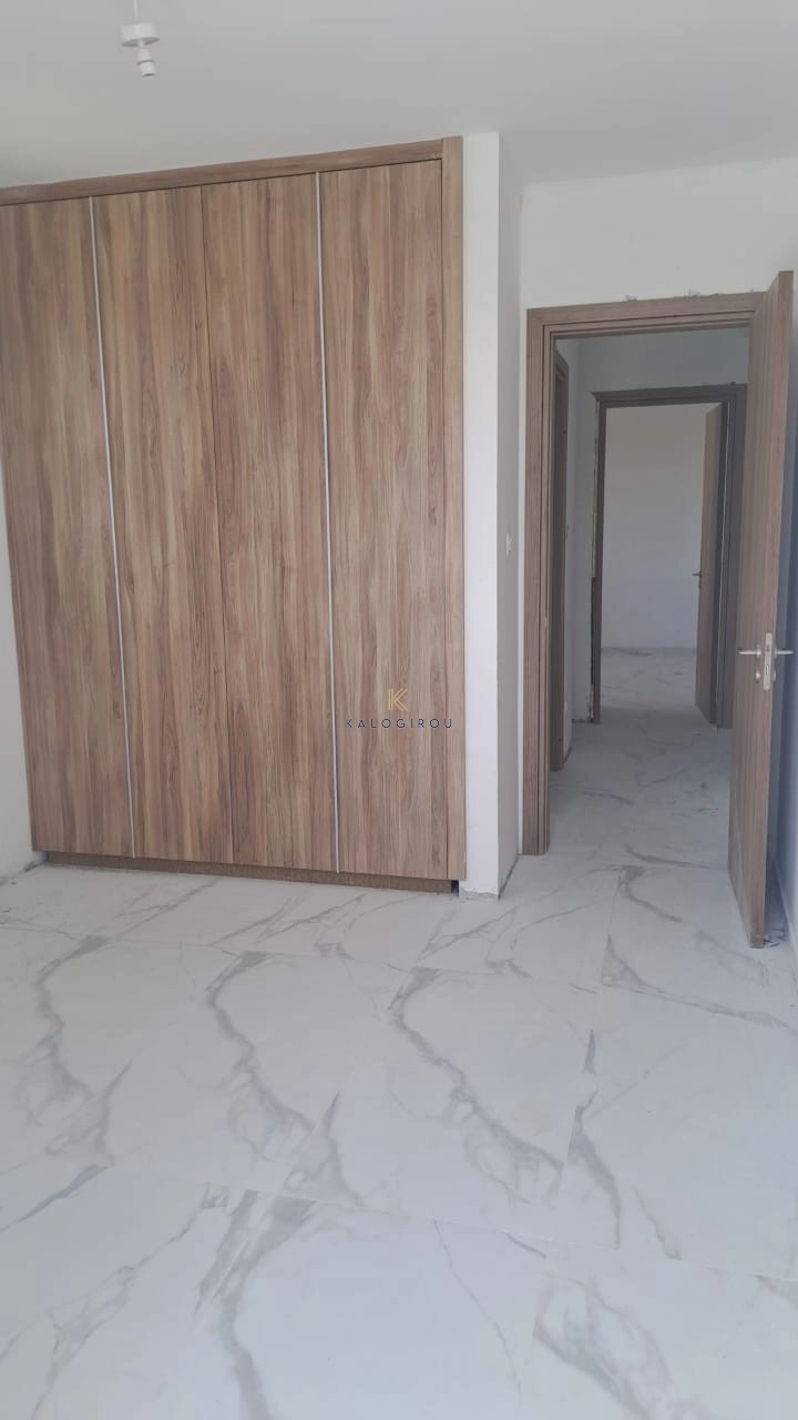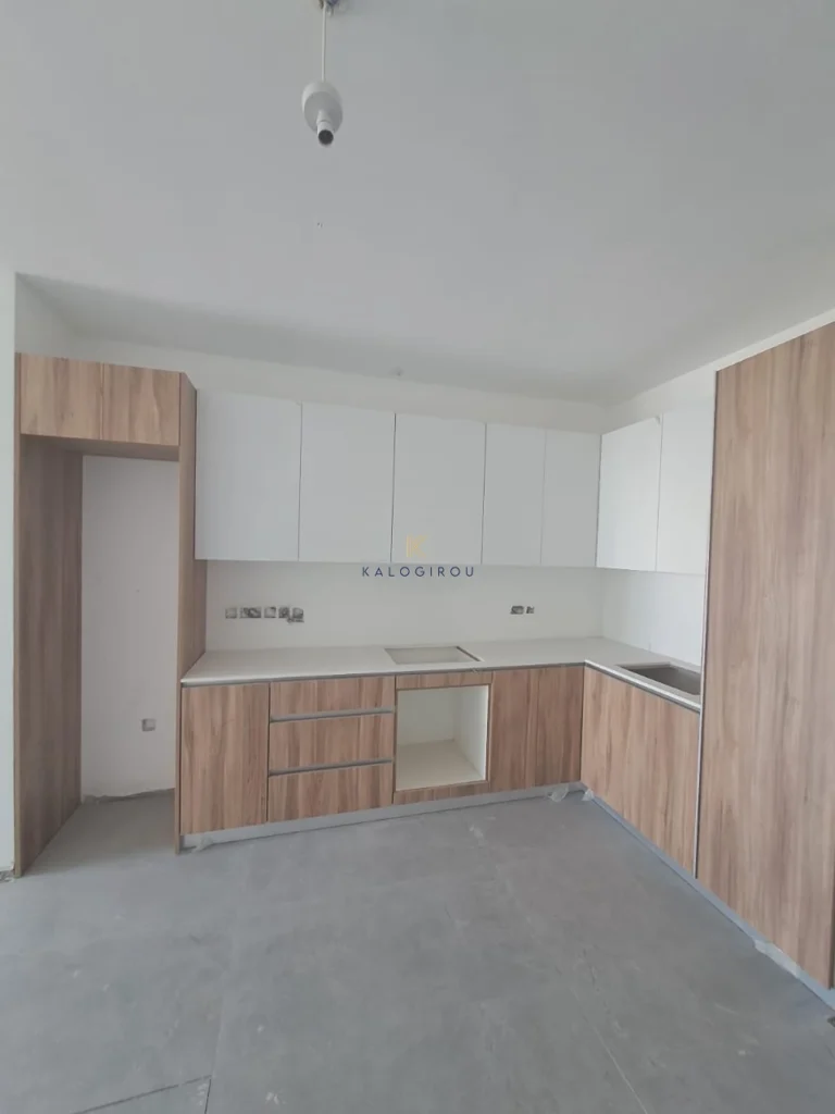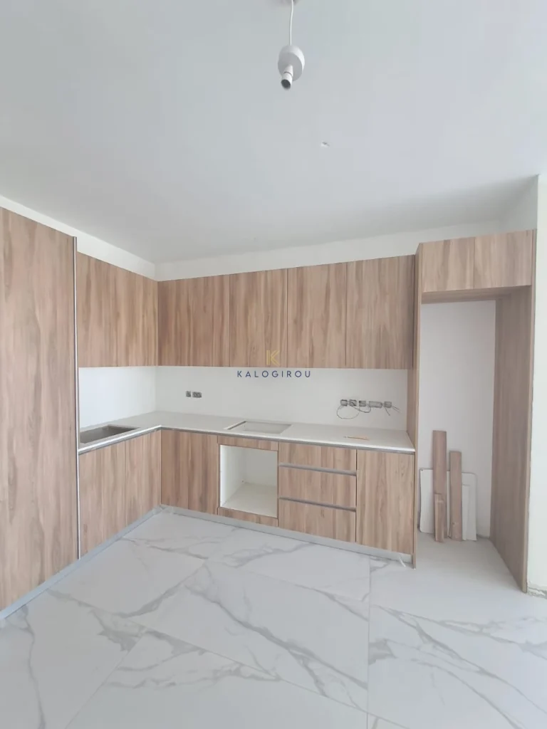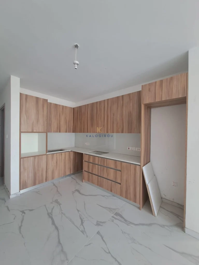 Apartment for sale in Kiti area, Larnaca. It consists of an open plan kitchen, living area, a main bathroom, two bedrooms, one en suite with shower with wc and covered veranda. The property has a storage room and covered parking on the ground floor.