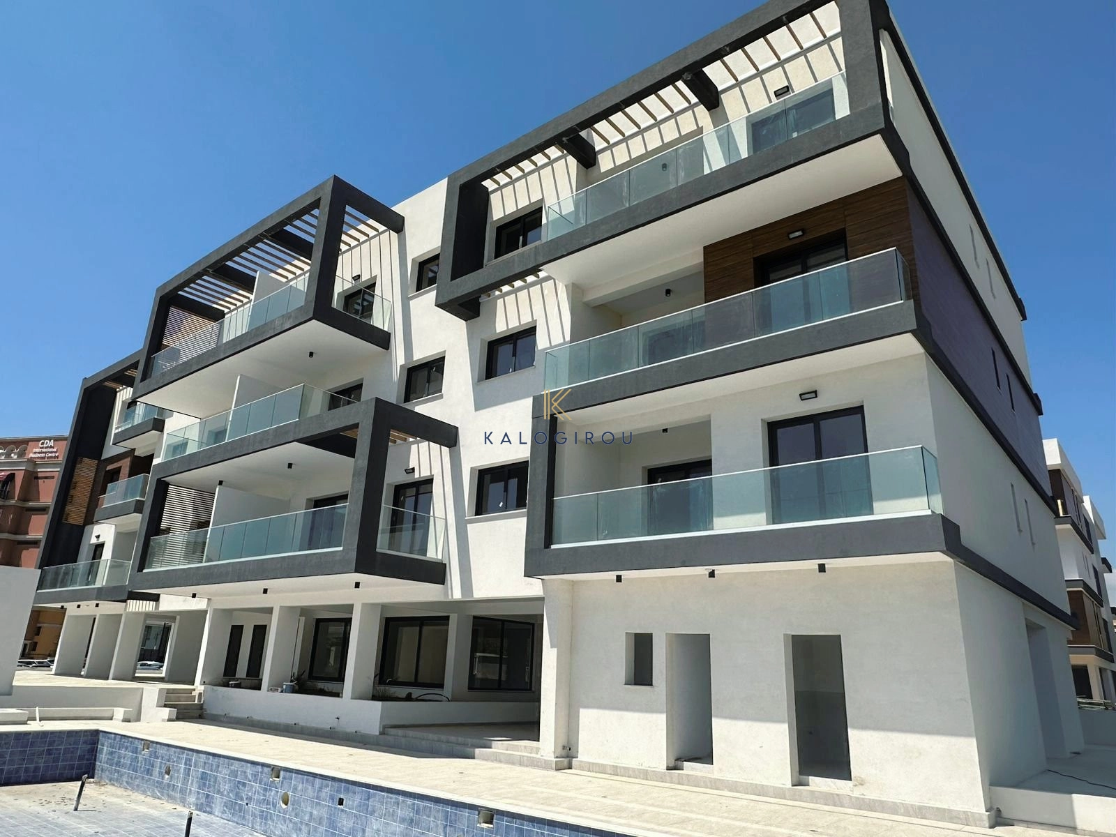 Apartment for sale in Agios Athanasios area, Limassol. It consists of open plan kitchen, dining area, living room, a 9 sq.m covered veranda, a main bathroom (with shower), 2 bedrooms, master bedroom is en suite and spacious closet. The residents have also exclusive right of use to a storage room and covered parking. Communal swimming pool also available on the ground floor.