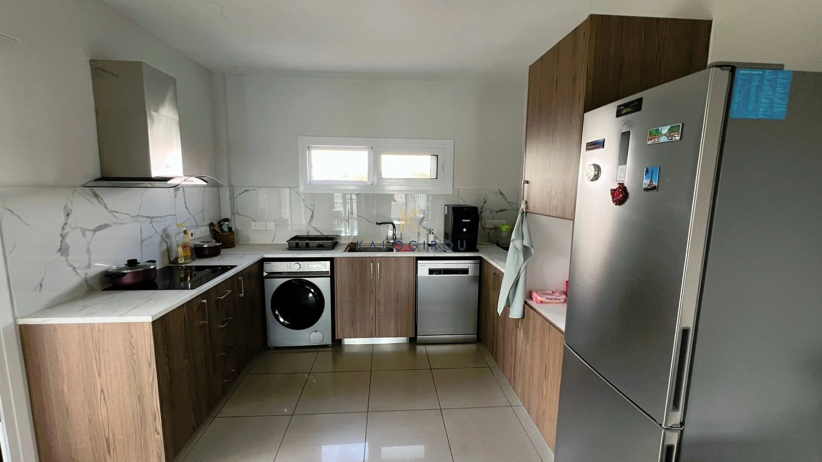 Apartment for sale in New Mall area, Larnaca Town. The property consists of 3 bedroom, open plan kitchen, living room, 1 bathroom with WC, uncovered parking, and 13 sq.m. covered verandas. The apartment is fully equipped with A/C split units and high-quality kitchen appliances from Midea. Also it has thermal windows with mosquito nets. There is also potential for a roof terrace.
