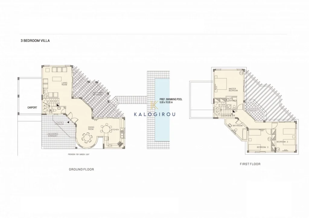 Two storey villa for sale in Kouklia area. The ground floor consists of an open plan kitchen with dining area, living room, guest wc and large uncovered veranda. The first floor consists of a main bathroom, 3 bedrooms-master is en suite with shower, and big uncovered veranda. In addition, the house offers graden, swimming pool and covered parking.