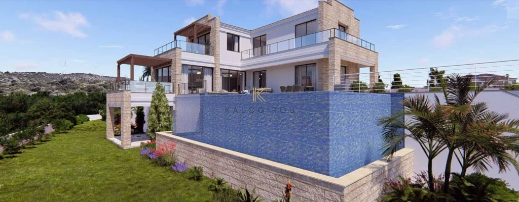 Impressive, Sea View, 5 Bedroom Villa with Pool for sale in Kouklia area, Paphos. The location of the house is offering easy access to the motorway, the city of Paphos, and all necessary amenities. The surrounding area is known for its luxurious residences and well-organized, peaceful environment.