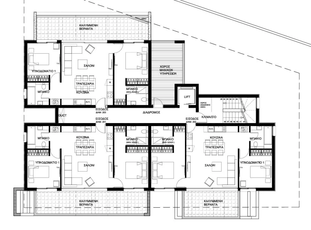 Melamine oak for all wooden kitchen and bathroom fixtures, cabinets, and interior doors
