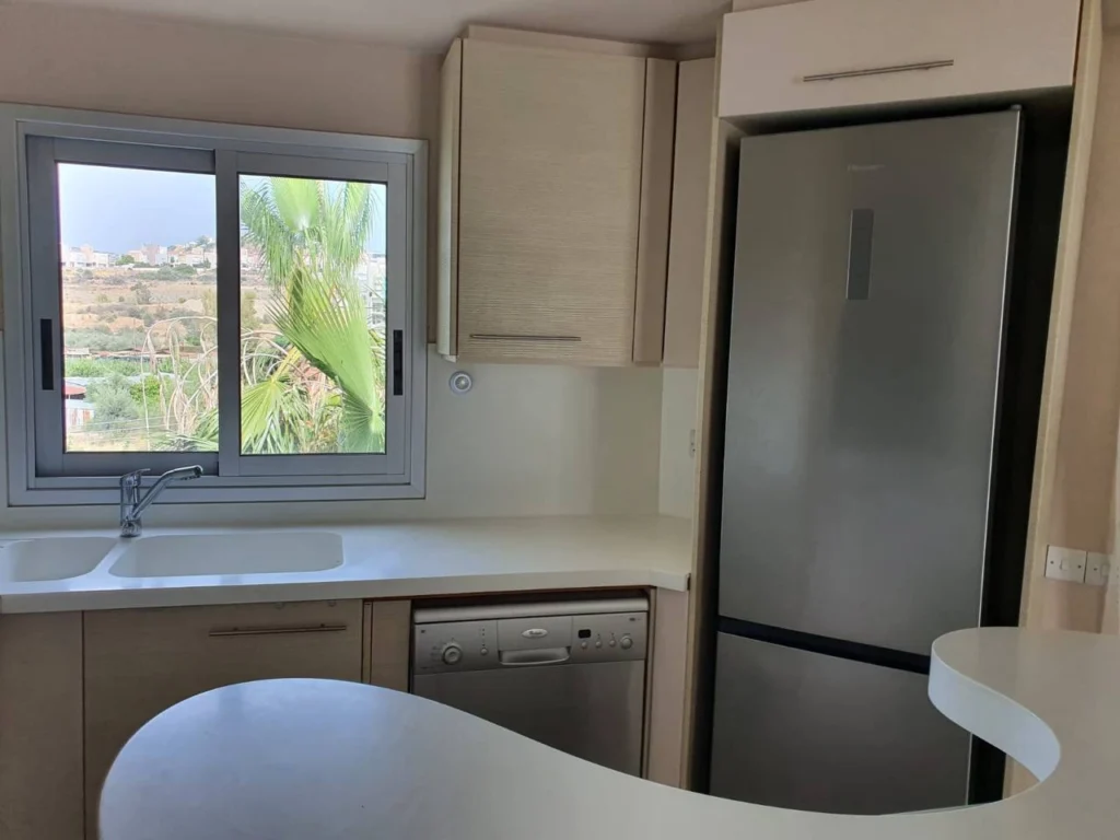 The property is situated on the last floor of the third-floor residential building (6 apartments) and consists of a spacious living room which leads to the front covered veranda, open plan kitchen with large dining area, comfortable family bathroom and two bed rooms with balcony. A/C units, large storage room, private covered parking place and ptivate uncovered parking place.