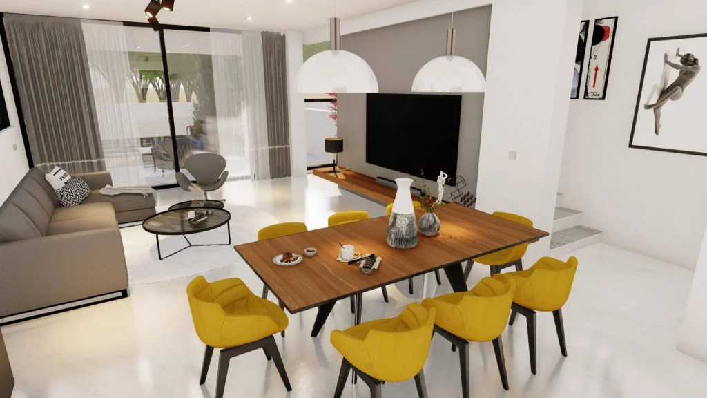 For sale a 3-bedroom townhouse with an additional bathroom on the basement in the Geroskipou area. The basement can be converted into an additional bedroom, office or gym. The convenient location allows you to reach the center of Paphos in 10 minutes by car and the Limassol expressway in one minute. The townhouse has an electric underfloor heating, photovoltaic system to save electricity, its own parking. The sea view will also be a nice bonus.