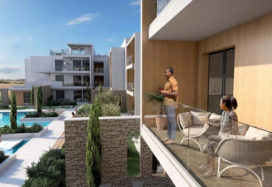 Apartments for sale in a newly built complex in a quiet and peaceful area of Pyla, Larnaca. A great offer for those who are looking for comfortable and stylish accommodation. The property has 2 cozy bedrooms and 2 modern bathrooms. The open-plan kitchen creates a cozy space. In addition, the apartment has a covered veranda of 10 m2, where you can relax and enjoy the fresh air. Finishing works are carried out at a high level, which gives the apartment a modern and stylish look. The complex provides access to a communal swimming pool for relaxation and relaxation. Solar panels provide eco-friendly and energy-efficient use of energy. Covered parking and a storage room add convenience to the owners. The apartments are located in close proximity to all necessary infrastructure and interchanges of roads in different directions of the island. Excellent return on investment.
