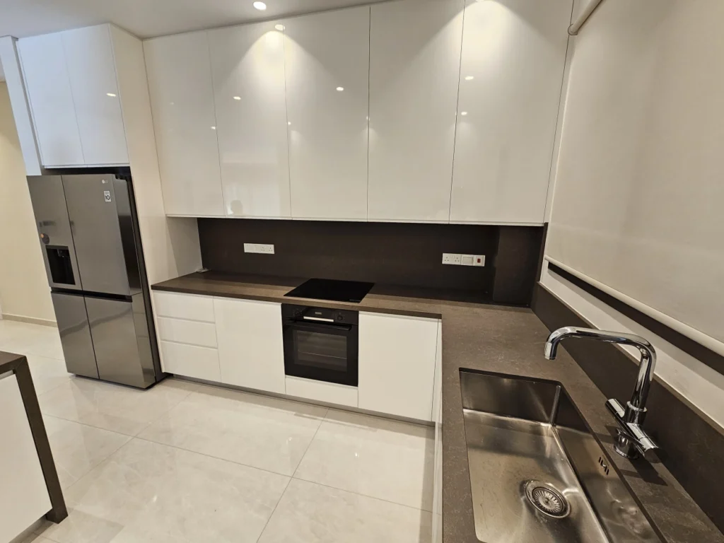An apartment with three bedrooms and a private terrace is for sale. The location provides easy access to all the entertainment of the city, but at the same time good sound insulation and the location of the bedrooms from a quiet and residential area, allows you to retire in silence. There is a park area nearby. There is an indoor parking. High quality construction and finishing materials. The property is close to many archaeological sites and attractions, including the famous Paphos Harbour and Kings Avenue Shopping Mall.