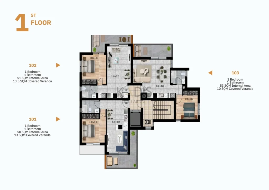 •Internal Area 53m2