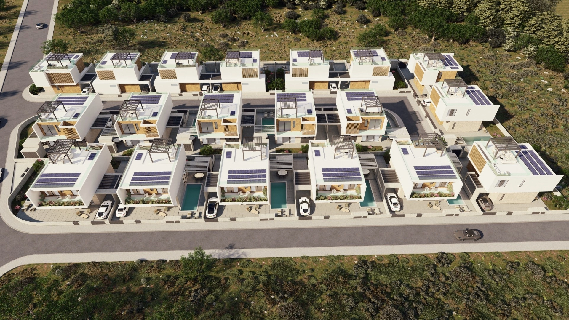 Reference ID: #SA32744Price details: €540,000 +VATProject exhibits a remarkable combination of elegance, functionality, and attention to detail.This project encompasses a collection of 19 meticulously designed 3-bedroom villas, boasting a harmonious fusion of traditional and modern architectural elements.Each villa, situated on a plot ranging between 300m 2 and 370m 2 offers the option to incorporate a private swimming pool, further enhancing the allure of the property.In the project specification and attached prices we include the following features:● Italian manufactured floors● Spacious living, dining & kitchen area● Underfloor heating with water● Optional swimming pool● VRV cooling system, offering efficient and customizable climate control● High ceilings and high doors in all rooms● Photovoltaic system of 4,8 kW● Full thermal insulation, ensuring Energy Efficiency Category A Energy-efficient slimline aluminium windows● Water pressure system, and water filter under kitchen cabinets● Bathrooms equipped with convenient walk-in showers, safety glass, and wall-mounted toilets● Private uncovered parking for 2 cars● Security system with alarm and CCTV● Barbeque area at kitchen level featuring space for outdoor entertainment.● Electric gate for cars and provision for electric car chargerAdditional Options:● The inclusion of furniture can be arranged for an additional €40,000 + VAT, providing a complete and ready-to-enjoy living experience.● The option to incorporate a swimming pool is available for an additional €20,000 + VAT.The project is currently underway.Covered area: 162 sq.m.Covered veranda: 50 sq.m.Roof garden: 27 sq.m.Plot size: 306 sq.m.Delivery date: September 2025PLUS V.A.T
