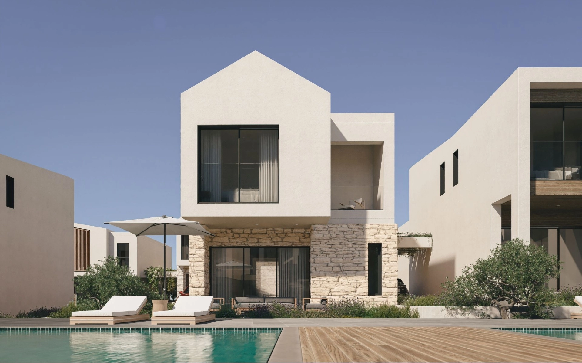 Reference ID: #SA29910Price details: €463,000 +VATNestled away in the quaint and charming village of Emba, close to Paphos City Centre.This two storey 48-villa complex is finished in traditional stone and wood cladding, blending into the natural environment with contemporary style.With top-of-the-line specifications and features like private parking spaces, 24-hour security and an onsite restaurant – it is one of the most desirable complexes in the area.Impress your guests as you open your large veranda doors to your own private pool and lounging area or dazzle them with the concierge service, clubhouse and communal pool.You can entertain in style in the BBQ and lounging area, embracing the Mediterranean lifestyle in luxury and comfort.When it’s time to retire for the night, you’ll sleep soundly in one of three bedrooms with two sleek, stylish bathrooms and a guest toilet.You will fall in love with the large and airy spaces of the modern and open floor plan with marble tiles that open onto private verandas to let in plenty of natural light. Modern appliances in the kitchen and additional features such as double-glazed windows with aluminium frames, air conditioning, solar system for heating water, and a pressurized water system rounds off this perfect home for discerning buyers. With amenities close at hand and a luxurious home that provides everything you desire – Avalon gardens will make you feel like Mediterranean royalty.Available for sale three 3-bedroom villas.Prices: €463,000-€590,000Covered area 130-150 sq.m.Covered veranda 16-19 sq.m.Plot size 166-209 sq.m.PLUS V.A.T