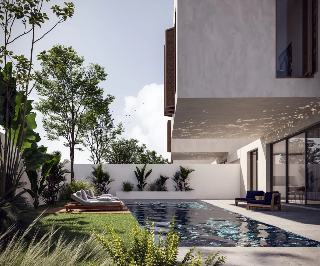 Chloe Downtown Villas offer a unique lifestyle of excitement and adventure in the center of Protaras. The development set a few hundred meters from Protaras beautiful coastline at superb location overlooking Protaras will consist of seventeen linked detached luxury villas with private pool and built to the highest standards. The design and layout of the villas is second to none. Chloe Downtown Villas will have a communal green area and privacy walls that protect uts residents and offer an exclusive lifestyle. Only a few minnutes walk from the center and a short drive to all the amenities of the area.