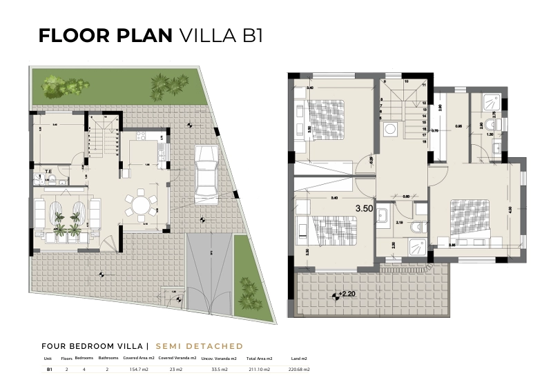 Surrounded by landscaped gardens, the villa offers a peaceful outdoor setting for daily enjoyment. A private covered terrace with an outdoor dining area and BBQ space makes al fresco meals and gatherings effortless. The addition of a private swimming pool is available upon request, enhancing the home’s leisure appeal.